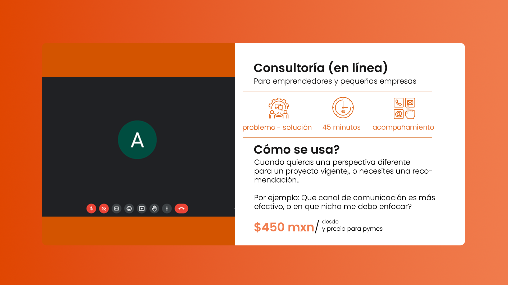 Decidí tener aprueba por un año mi servicios de estrategia y planeación de marketing, especialmente para emprendedores y pequeñas empresas, simplemente porque entiendo que a veces en el proceso de crear o impulsar tu idea o negocio se necesita a alguien con quien consultar o rebotar ideas.